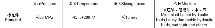 標準材料密封環:填充聚四氟乙烯F-PTFE0形圈:丁腈橡膠NBR或氟橡膠FKM特點-良好的動靜密封性能-可允許較大的擠出間隙,視應用場合而定,故可降低加工費用-由于較大的擠出間隙,在有污物的介質中也可安全使用-摩擦小,無爬行現象-溝槽簡單,可用于整體式活塞-由于可采用較多種類的材料,所以對工作條件的適應性強-適于新環保安全的液壓液(生物油)大的流體和高溫場合,可適合較大的活塞間隙。例如用在注塑機、推土機、農業機械、壓機和其他機床等。